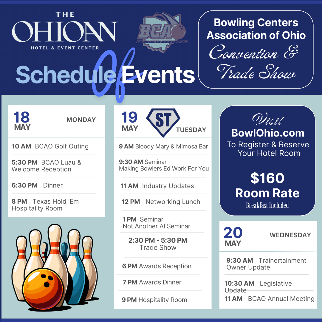 Set within a serene 15-acre park-like landscape just minutes from Columbus’s premier shopping, dining, and entertainment, The Ohioan Hotel & Event Center is an upscale boutique destination designed to elevate every gathering. BCAO Convention & Trade Show attendees will enjoy a $160 Room Rate.